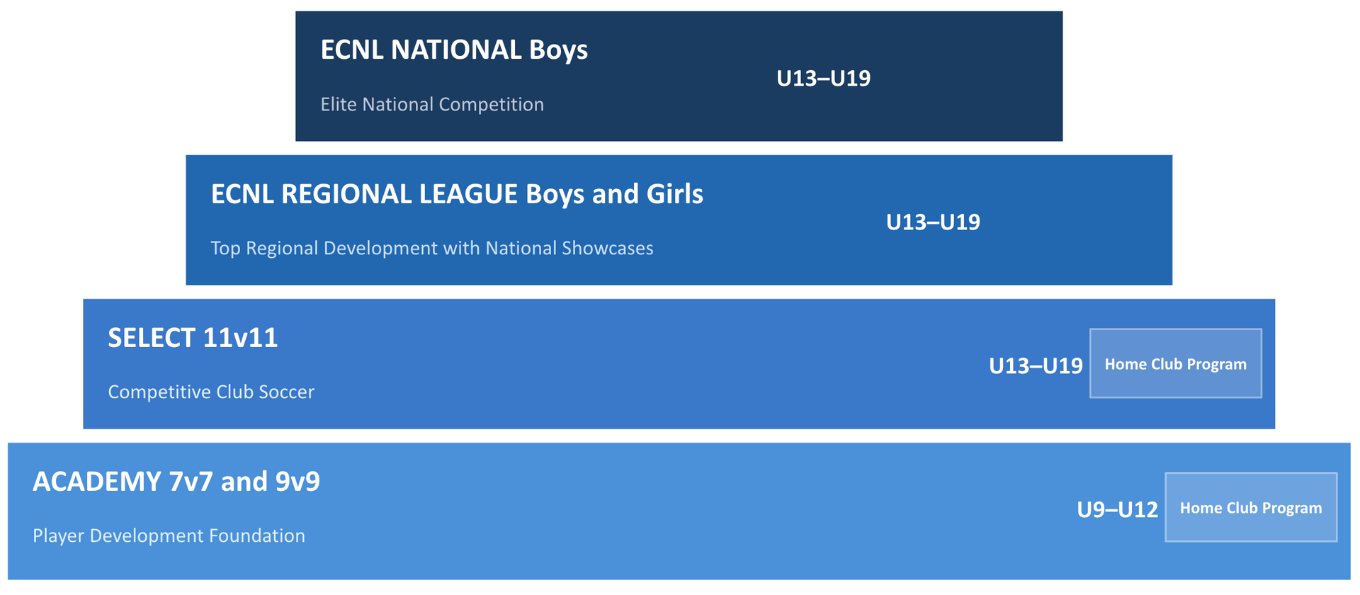 - Our Coastal Rush top teams compete in ECNL Boys and ECNL-RL Boys and Girls Gulf Coast Conference, as well as have opportunities to attend ECNL National Showcase events. Players that play on this team will have this team as their primary team for competition.